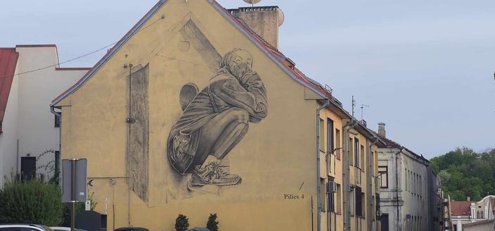 🎨 Autorem kolejnej pracy, noszącej tytuł "Powrót do domu", jest Tadas "Plugas" Vincaitis - powstała w 2018 r. na ul. Pilies 4.