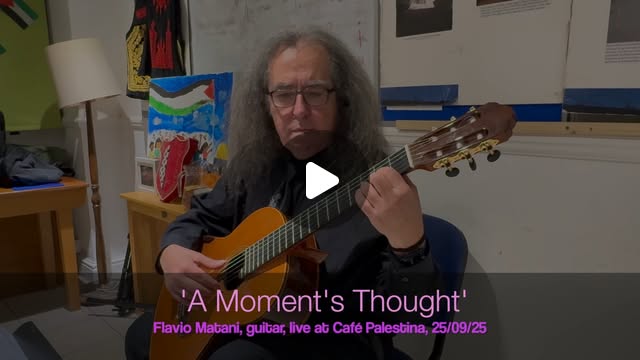Flavio Matani on Instagram: "'A Moment's Thought' . One of my pieces, played at a recital at @cafepalestina in @kentishtown on 25/09/25. Guitar is a Yulong Guo Chamber Concert. Playing at the @kentishtowncityfarm on Friday 17th October 2025. Would be good to see some of you there. Details in bio. #guitar #classicalguitar #flaviomatani #kentishtown #cafepalestina #yulongguoguitars"