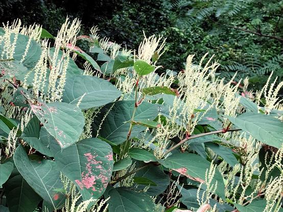 [Thread] So, let's talk about #Knotweed! Yeah, it's extremely invasive and hard to get rid of. And you DON'T want it anywhere near your buildings, especially basements (and yes, my grandparent's backyard was overtaken by it -- luckily, it preferred the backyard being near a marshy area). I spent a lot of time as a child practicing swordfighting with a wooden sword, and cutting down the knotweed. I sometimes wondered if it was edible as well (since it reminded me of rhubarb -- and yes, it is edible). And of course, the BEES love it. But still...