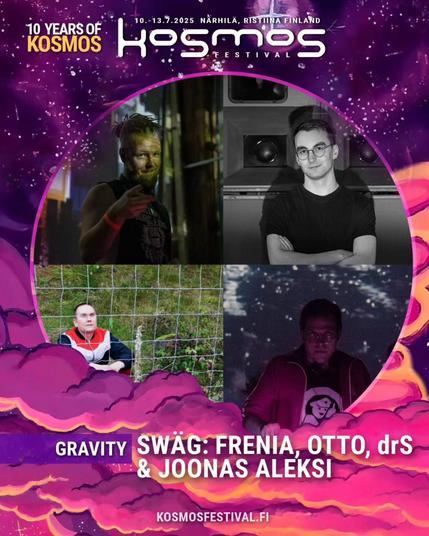 Kosmos Festival. 10-13 July 2025, Närhilä, Ristiina, Finland. Feat. Swäg (Tampere): Frenia, Otto, drS, Joonas Aleksi.