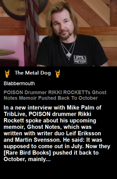 POISON Drummer RIKKI ROCKETT's 'Ghost Notes' Memoir Pushed Back To October