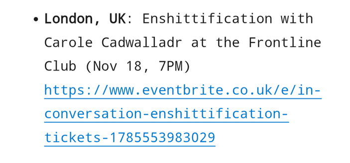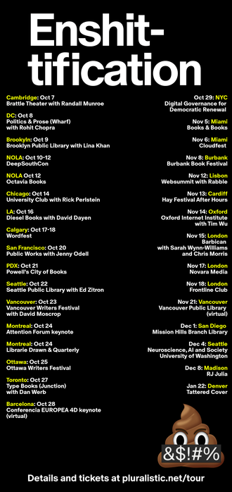 I'm on a tour with my new book, the international bestseller *Enshittification*!