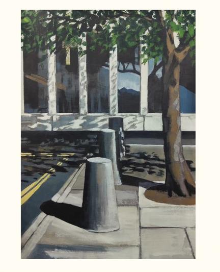 #art #painting #cityscape #infrastructure #streetfurniture #dappledlight #localtheatre #duefordemolition #sunshineonconcrete #bruntonmusselburgh #arthursseat