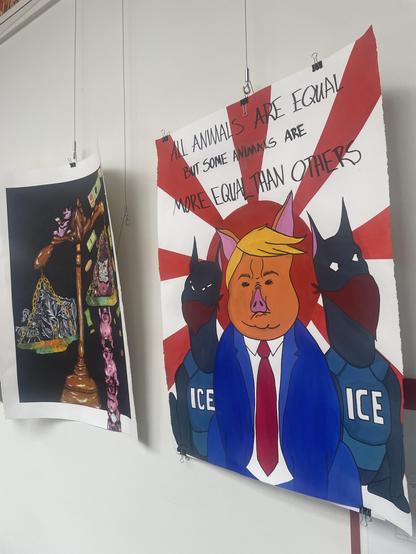 The accompanying artwork in the lobby is topical.