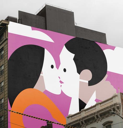 Cette fresque évoque la rencontre, le contact, l’intimité.