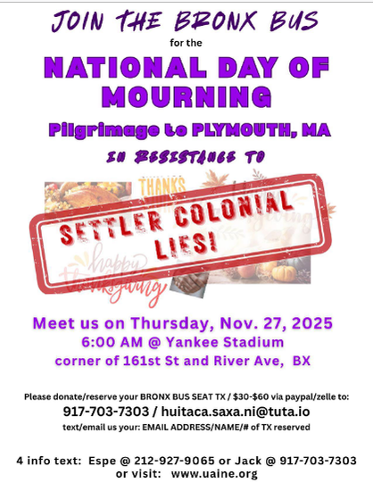 #ThanksgivingMyth #InTheSpiritOfMetacom #LGBTQ #TwoSpirits #MMIWG #LandBack #Resistance #ProtectMotherEarth #FreePalestine #CorporateColonialism #Capitalism #NoMiningWithoutConsent #ColonialismIsACrime #IndigenousResistance #DefendTheSacred #ManifestDestiny