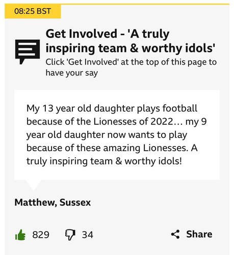 Don’t mean to rain on tomorrow’s parade for the 2025 UEFA Women's EURO winners. Lucy Bronze et al are amazing. But amid all the talk of women’s football doing things differently – and given the Lionesses are such powerful role models – isn’t this as sad as it is true?