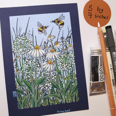 #Bees #Flowers #Summer #OriginalArt #Drawing #PenAndInk #ColourPencil #MixedMedia #Painting #Artwork #TraditionalArtist #ArtFromScotland #GiftIdeas #ArtShop