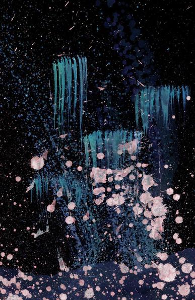 Scheduler can't alt-text some sites, so alt: Abstract mixed media inversion figure/face studies, often non-human. Rich colors on black, with a strong tendency towards pink spatters.