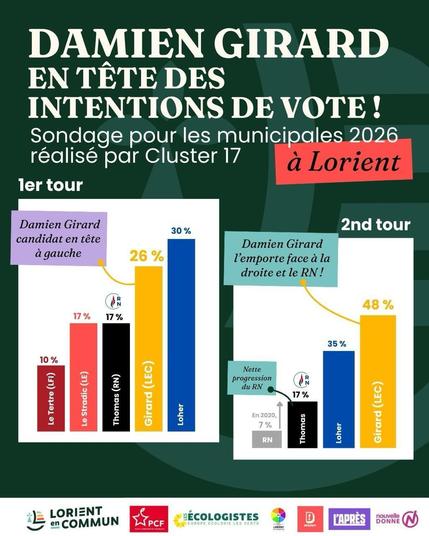 [Municipales 2026 à #Lorient] Rejoignez l'union de la gauche et des écologistes avec Lorient en Commun et Damien Girard si vous aimez Lorient, son âme ouverte et solidaire et voulez retrouver une ville apaisée !