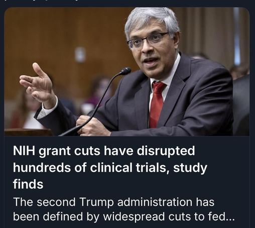 #NIH grants cuts:🚨disrupted ~383 clinical trials: infectious dis res hit esp hard -real-world cons of Trump/c.'s #health policy.