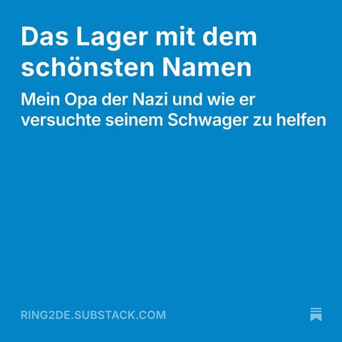 Erst diskutierst du mit Freunden über Mitläufertum, dann denkst du an deinen Opa und sein Mitlaufen und schwupps hast du n Teil der Familiengeschichte aufgeschrieben: https://open.substack.com/pub/ring2de/p/das-lager-mit-dem-schonsten-namen