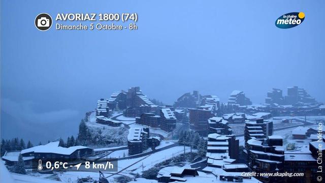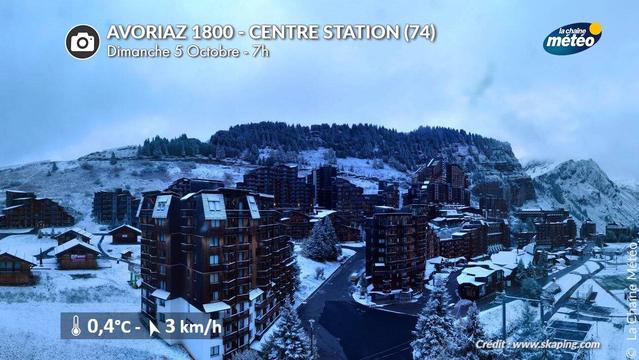❄️ Réveil sous un petit manteau blanc à #Avoriaz en #HauteSavoie ce lundi 6 octobre 2025, après de nouvelles averses de #neige survenues cette nuit. (webcam @skaping)