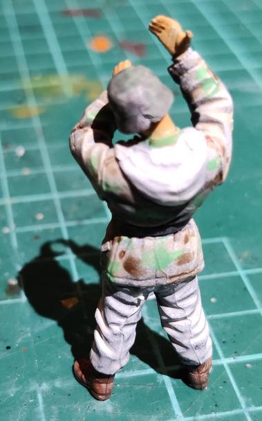 I added some green to the helmets, painted the visible parts of the M41 tunics green, added super thin black over the belt and on one pair of boots. The snow sides of the winter coats and pants got painted white, it shows surprisingly well.