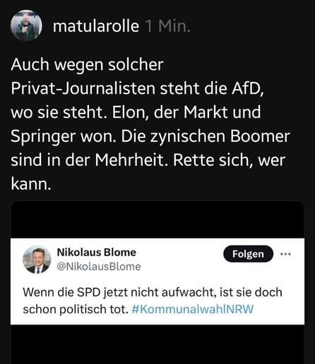Aber dann habe ich gesehen, dass es ein Kommentar von Nikolaus Blome ist, der m. E. einfach *immer* danebenliegt...