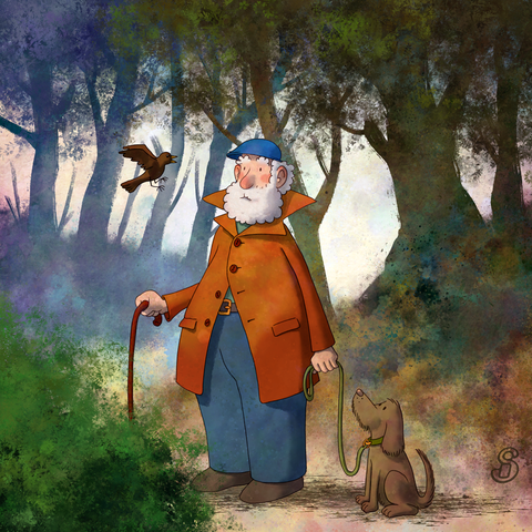 #digitalart #digitalpainting #characters #woods #noai #oldman #dog #bird #landscape #print