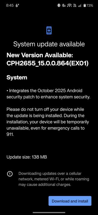 OnePlus 13 Getting October 2025 patch level. 138mb.