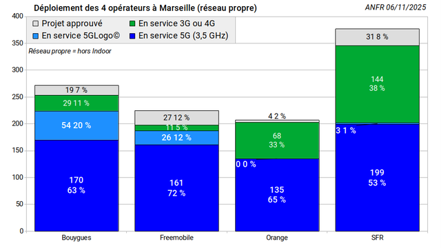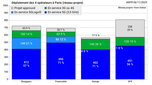 Déploiement des opérateurs de téléphonie mobile #4MNO #Bouygues #Freemobile #Orange #SFR #20GV [ANFR 06/11/2025]