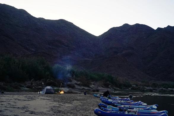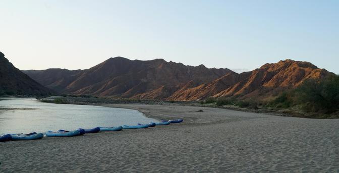 Paddling down the #OrangeRiver The boats pulled up for the night. Camp was on the beach, behind me.
