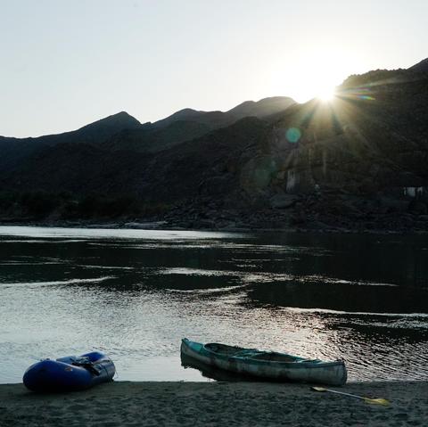 The sun rising over the mountains surrounding the #OrangeRiver