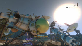 Each planet is wildly different – one’s a hollow shell around a small black hole, one’s an ocean world with constant storms, one’s a rocky world with a deep equatorial canyon that shares an orbit with a world covered in sand, one’s been shattered into pieces by a giant space-capable bramble. Events during the loop change the environments too, blocking some areas and revealing others.