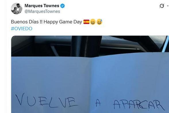 🔥 ■ Enseña la nota que le ha dejado un vecino en el coche por aparcar en su plaza de garaje ■ El jugador del Alimerka Oviedo Marques Townes la ha mostrado en su cuenta de X.