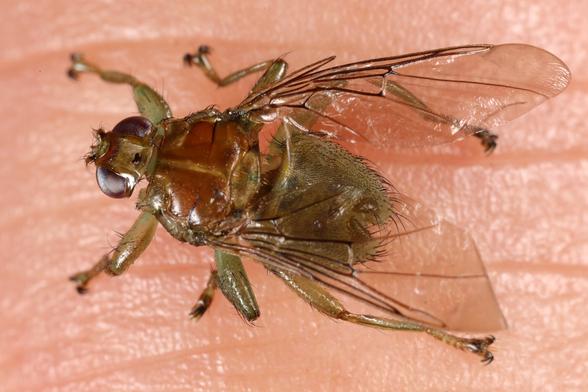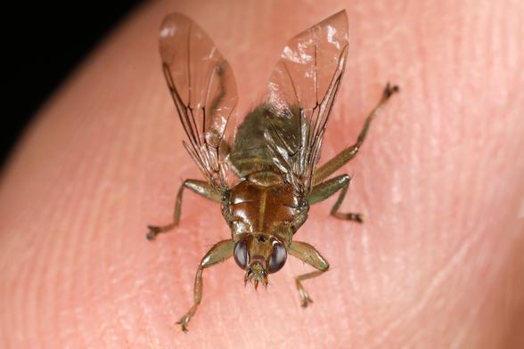 Die Gemeine Vogellausfliege (Ornithomya avicularia) saugt Blut an Vögeln, wie Tauben oder Schwalben. Die Tiere können fliegen und sehr schnell laufen.