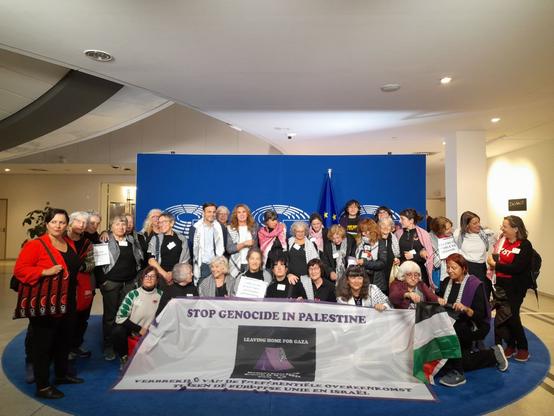 Mientras en el Estado español sigue la huelga general por Palestina, esta mañana hemos estado en el Parlamento Europeo apoyando a la Liga de Mujeres por la Paz y a Mujeres de Negro para exigir a la Unión Europea el embargo total de armas a Israel y el fin de la ocupación.