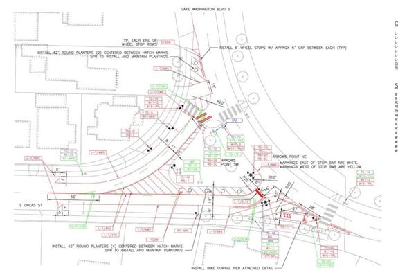 Staff at both Seattle Parks and SDOT worked together to fully design a series of planned street safety upgrades to Lake Washington Boulevard, including additional speed humps to slow speeding and a redesigned intersection at S Orcas Street. The existence of late-stage design documents and internal communications uncovered by Ryan Packer at the Urbanist demonstrate that the city was planning to go ahead with the previously announced safety upgrades to the street as recently as the spring before Mayor Bruce Harrell’s office told them to cancel them.