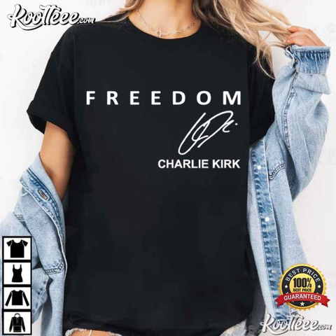 Show your voice with the bold Charlie Kirk signature Freedom tee. Perfect for everyday wear with a patriotic edge.