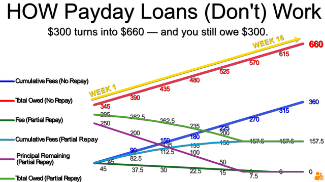 $300 payday loan → $660 in fees → still owe $300