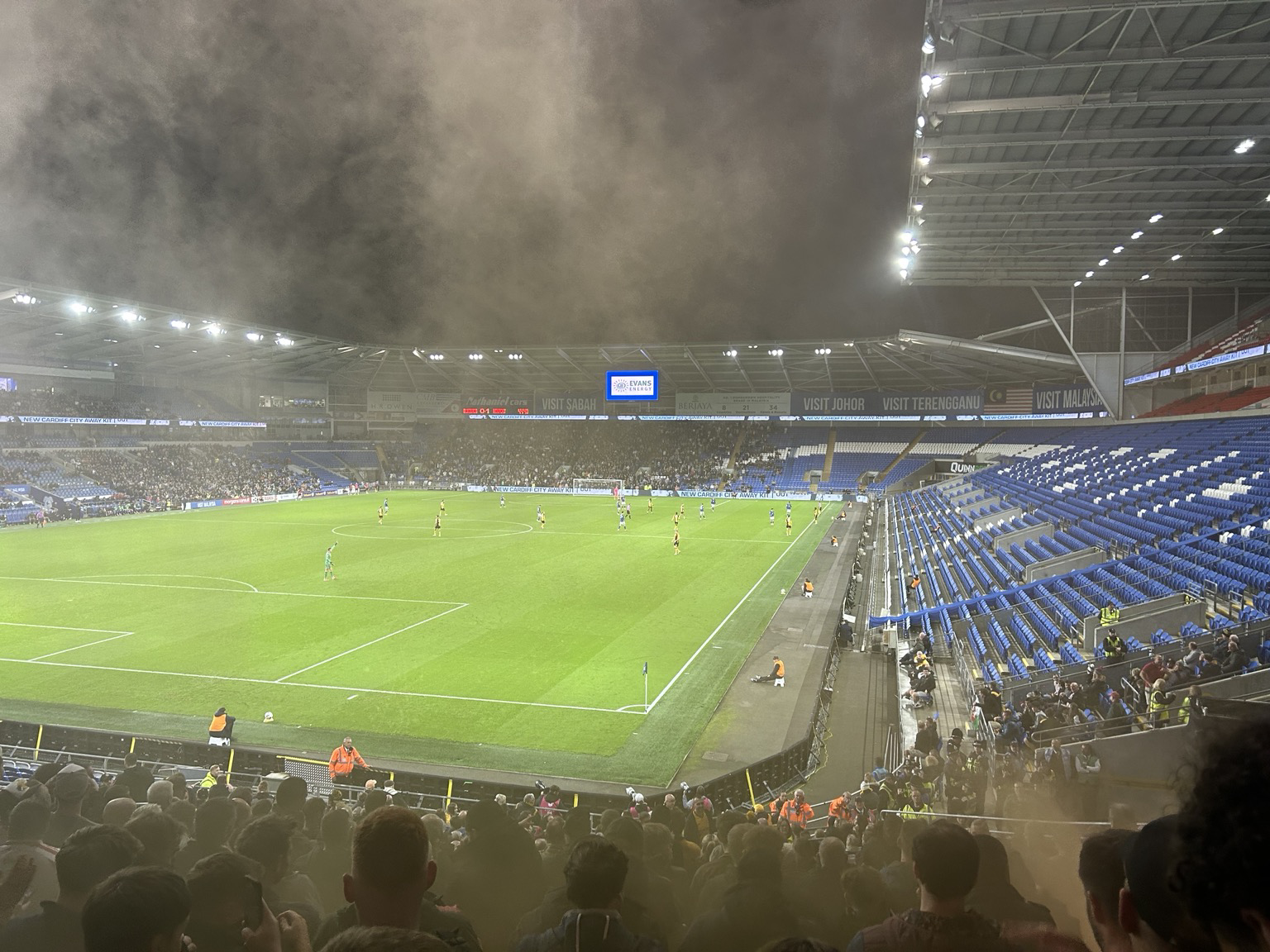 Not a bad view. 1-0 up at your local rivals, viewed through a hazy miasma of amber pyro smoke. 👌🏻