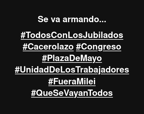 Es el momento de manifestarse. #LLA no está en condiciones de reprimir absolutamente nada.
