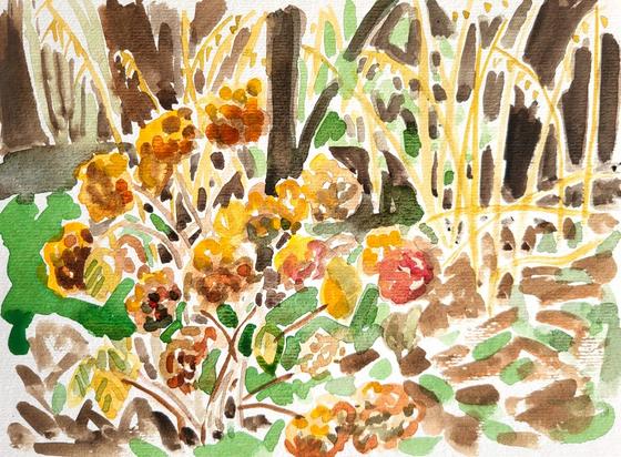 Encre & Aquarelle direct 20x20cm, 1h pour le dessin, 1h30 pour l'aquarelle