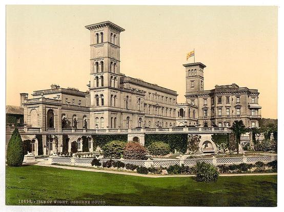 Osborne House, Isle of Wight, England between ca. 1890 and ca. 1900. Views of the British Isles Image shows Obsborne House in East Cowes on the Isle of Wight in the United Kingdom. The house was built between 1845 and 1851 for Queen Victoria and Prince Albert as a summer home and rural retreat. (Source: Flickr Commons project, 2015) England Isle of Wight