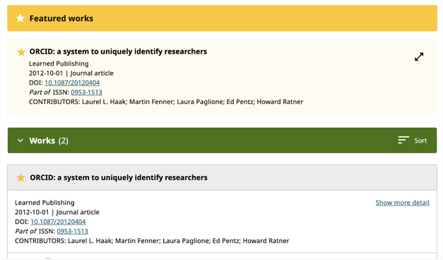🗣️ We are delighted to announce the release of a new Featured Works section of the ORCID record!
