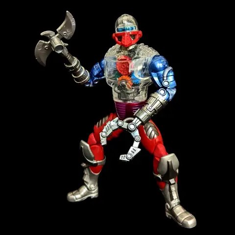 Someone at Mattel really liked designing this figure. It goes a bit harder than any Roboto before. It has moving gears, chunky weapons and even a transparent head with metal skull inside.
