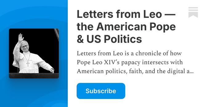 Letters from Leo is a chronicle of how Pope Leo XIV’s papacy intersects with American politics, faith, and the digital age during the presidency of Donald Trump. Click to read Letters from Leo — the American Pope & US Politics, by Christopher Hale, a Substack publication.
