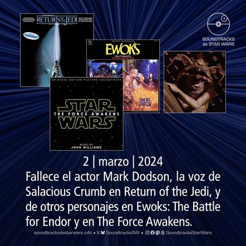 El 2 de marzo de 2024 fallece el actor Mark Dodson, la voz de Salacious Crumb en Return of the Jedi, y de otros personajes en Ewoks: The Battle for Endor y en The Force Awakens.