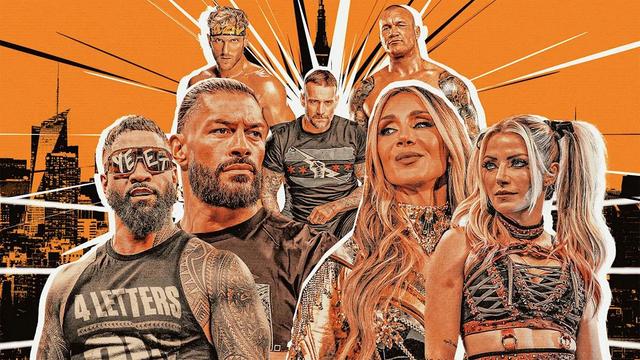 - PARIS, FRANCE – AUGUST 31: Seth Rollins vs. LA Knight vs. Jey Uso vs. CM Punk, Becky Lynch; WWE Clash in Paris at Paris Le Defense Arena on August 31, 2025 in Paris, France.