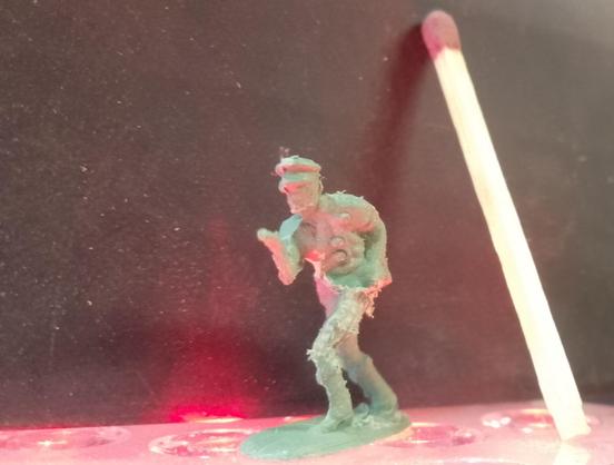 Will you check out the horrible tiny militaryman on a disco floor with his tinder match!