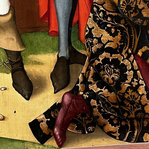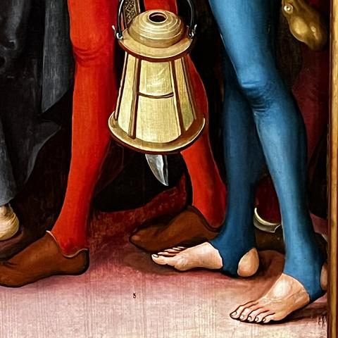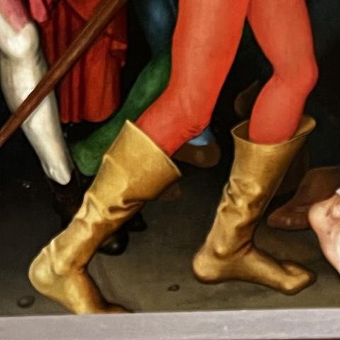 Das Musée #Unterlinden ist sonst so ein #Wunderkammer-Museum mit allerhand Sachen, von #Archäologie, einem #Weinkeller, Kunst vom 19. Jahrhundert bis Moderne, sogar #Picasso. Der Kern ist aber die Sammlung spätmittelalterlicher sakraler Kunst, vor allem des Lokalhelden Martin #Schongauer - hier bei Mirabilia durch Schuhwerk vertreten: