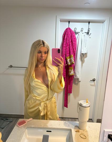 β¨ Mirror, mirror on the wall, whoβs the fiercest of them all? πββοΈπ Abigail Lutz is serving up some serious blonde bombshell vibes! π₯ Own your shine and donβt hold backβlifeβs too short to blend in!