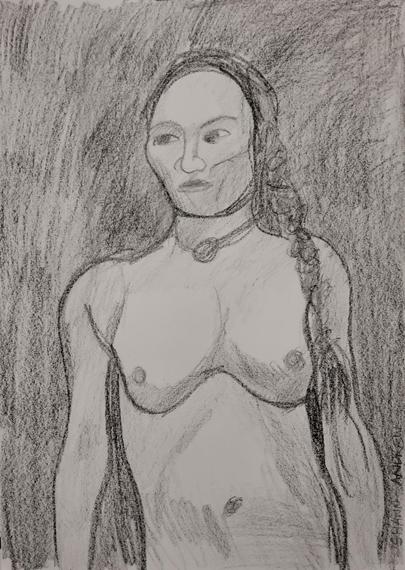 Life drawing - lumber crayon on paper.