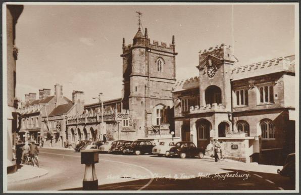 St Peter's Church & Town Hall, Shaftesbury, Dorset, c.1950s - Sweetman RP Postcard