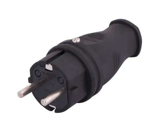 Stecherul Schuko Lezard 106-0400-0105 este un conector robust din cauciuc, conceput pentru utilizare în medii cu umiditate sau praf, oferind protecție IP44.