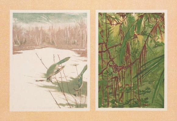Blue Jays in Winter and Birds of Paradise in the Forest (1909) by Gerald H. Thayer, from Concealing-Coloration in the Animal Kingdom.