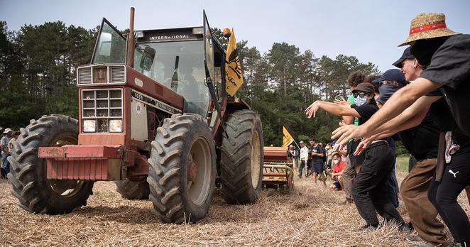 "Les sites de production et de vente emblématiques de l’agro-industrie et du libre-échange, les grandes infrastructures qui tuent les paysan·nes comme les sols et intoxiquent la population peuvent être bloqués efficacement" :