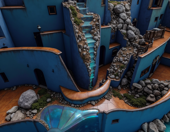 #Fantasy #CliffHomes #Blue #MineralWalls #OrganicShapes #RockyTerrain #Surreal #SteepPathways #TerracedLayout #WhimsicalSetting #FairyVillage #Flux #Img2Img #AIArt #AIArtists #StableDiffusion #AIArtCommunity