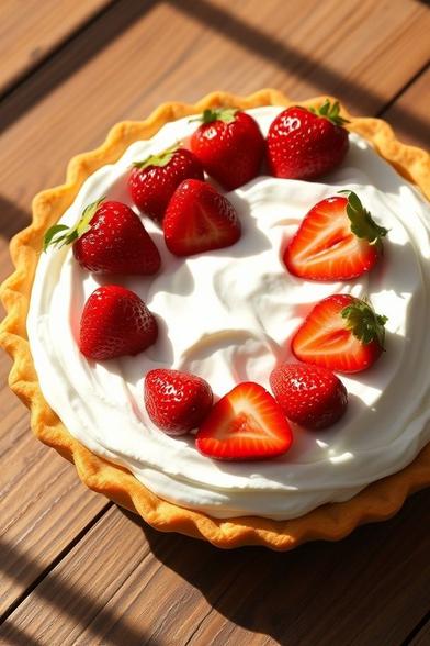 Junket and macerated strawberries and passionfruit